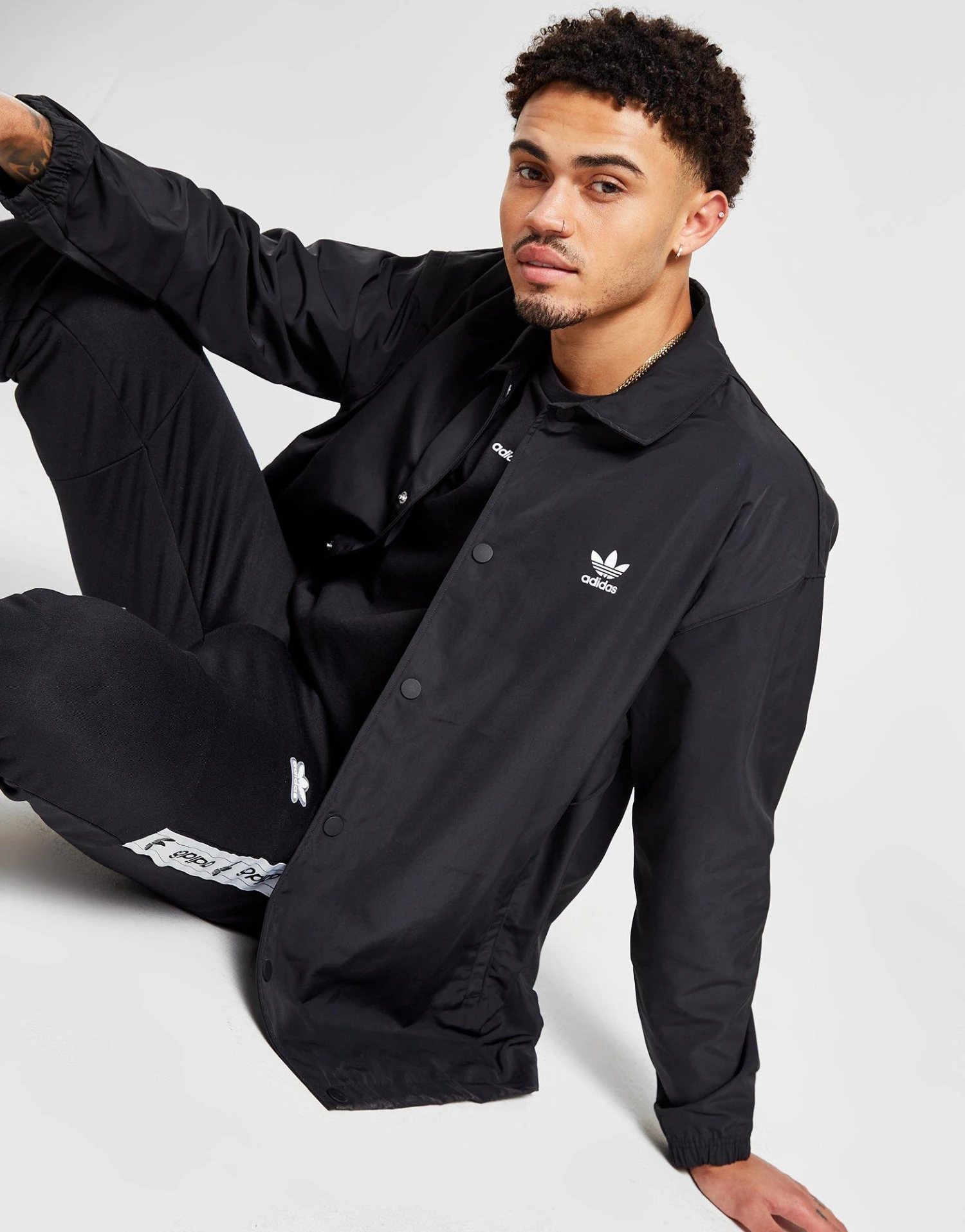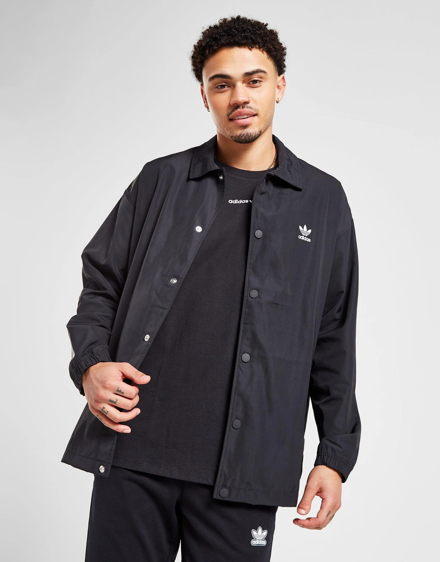 Ajoute un style intemporel à ta rotation avec cette veste Coach pour hommes d’adidas Originals. Dans un coloris noir, cette veste sobre est fabriquée à partir de tissu polyester recyclé léger et offre une coupe ample pour un confort décontracté. Il est doté d’une fermeture à bouton-pression sur le devant, d’un col rabattable et de poches passepoilées sur les côtés. Fini avec la marque White Trefoil contrastante sur la poitrine et le dos. Lavable en machine. | Notre mannequin mesure 6’1″ avec une poitrine de 36,5″ et porte une taille moyenne. | IA6371