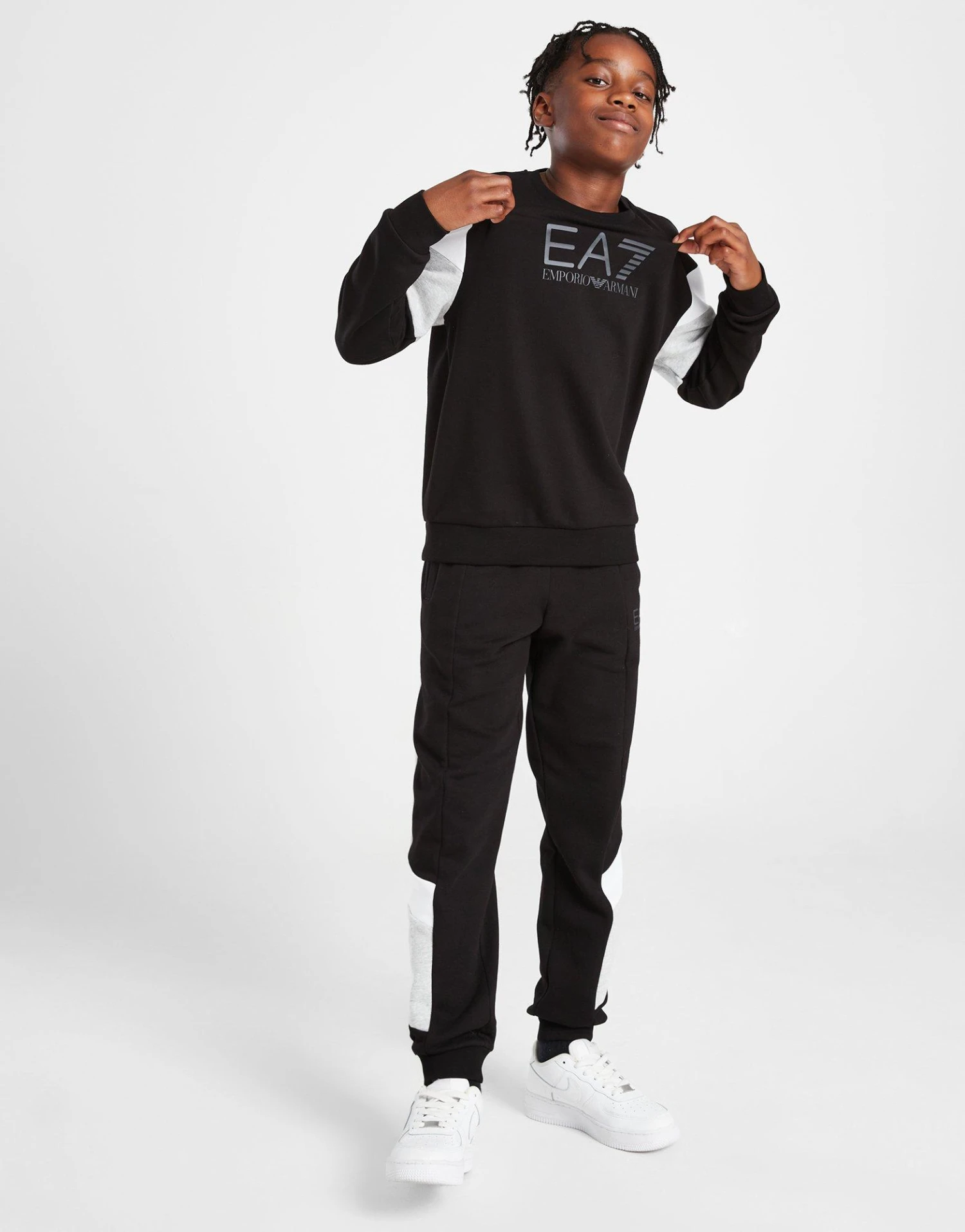 Sentez-vous premium lorsque vous superposez dans ce sweat Colour Block Crew pour juniors d’Emporio Armani EA7. Dans un coloris noir avec des panneaux gris et blancs, ce pull de coupe standard est fabriqué à partir de coton super doux pour un confort moelleux. Doté d’une encolure ras du cou et de bordures côtelées pour une coupe classique, il est orné de la marque EA7 ton sur ton imprimée sur la poitrine. Lavable en machine.