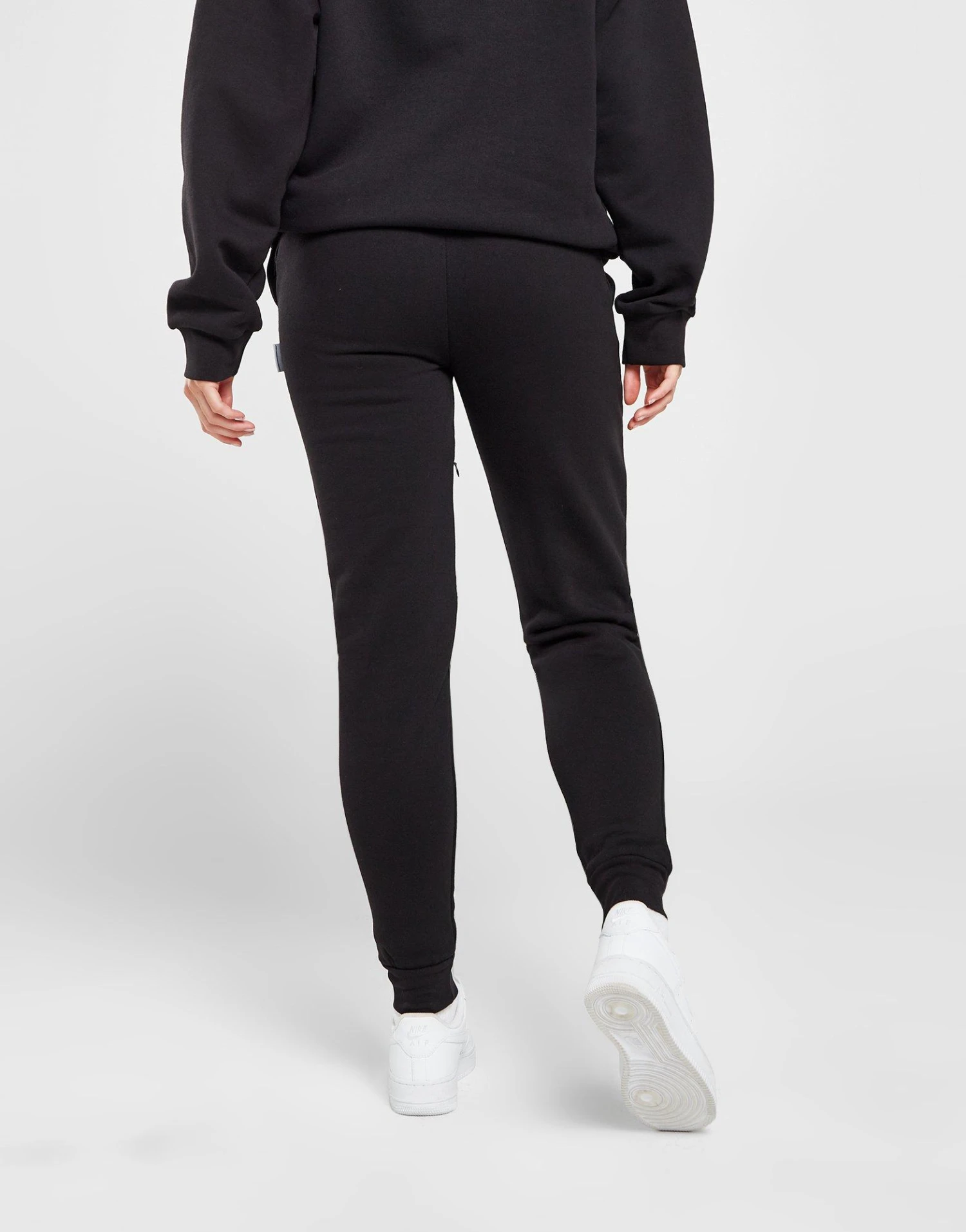 Gardez votre jeu hors service frais avec ces pantalons de jogging Kraze pour femmes de Hoodrich. Dans un coloris noir, ces sweats slim sont coupés dans un mélange de coton épais pour une coupe confortable. Il présente un cordon de serrage à la taille, des chevilles à revers et des poches latérales ouvertes. Avec une poche zippée dissimulée sur la cuisse gauche, ils sont finis avec la marque contrastante Hoodrich. Lavable en machine. | Notre mannequin mesure 5’9″ et porte une petite taille.