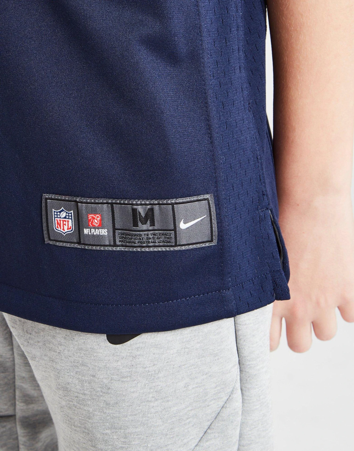 • Fini avec la marque Patriots, les logos Nike et NFL, ainsi que Jones # 10 à l’arrière.
