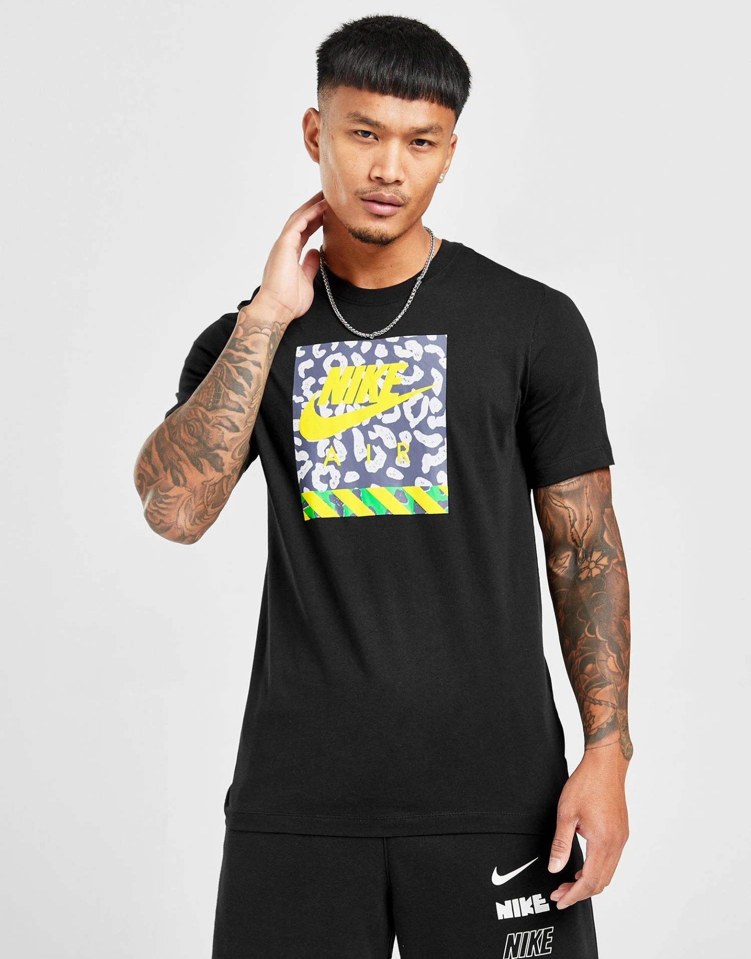Rafraîchissez votre style de tous les jours avec ce t-shirt Hazard pour hommes de Nike. Dans un coloris noir, ce t-shirt de coupe standard est confectionné dans un tissu doux en coton et polyester pour un confort au quotidien. Il présente des manches courtes avec une encolure ras du cou côtelée et est orné d’un graphisme Nike sur la poitrine. Lavable en machine | Notre mannequin mesure 6’0″ avec une poitrine de 40″ et porte une taille moyenne.